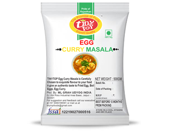 Tiny Top Egg Curry Masala is an exotic blend made from the choicest of ingredients, that are Hand Picked in the right proportion, gently blended and Coarse Ground to unlock taste and aroma only while cooking. Storage Conditions 1. Store in a cool and dry place 2. Refrigerate after opening