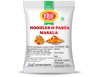 Tiny Top Pasta Masala makes perfect white or red sauce pasta Made with authentic ingredients, it is gently blended and ground to deliver better taste and aroma. Delicious Masala Pasta is ready to serve!